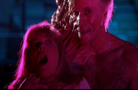 The reason I feel this movie suffers from multiple personalities is based on the special effects. I mentioned that Dr. Pretorius keeps showing up and is becoming more and more disfigured, which is where most of the special effects come into play. The effects look like Stuart Gordon had just watched both The Thing (Kurt Russel version, duh) and Videodrome the day before filming this movie and demanded those props be used again. I mean, I don’t blame him, the special effects in both of those movies were awesome, but seeing them used in a different context just a few years later was just a little underwhelming. There were definitely moments where the effects were cool, which is why I am rating this movie a little higher than I wanted to, I can admit that. But even then, it still appeared as though the effects didn’t work as well, as it seemed there was less movement with the effects than what was achieved in the aforementioned film. Don’t get me wrong, I loved the Gordon/Lovecraft/Combs project that was released a year earlier, Re-Animator. From Beyond, however, just really didn’t do it for me. If you are going to take a short story as bizarre as this one, I would really have liked to seen it go even more bizarre than using recycled effects, sex appeal, and the familiar faces of Ken Foree and Jefferey Combs to try to gain cult credibility.