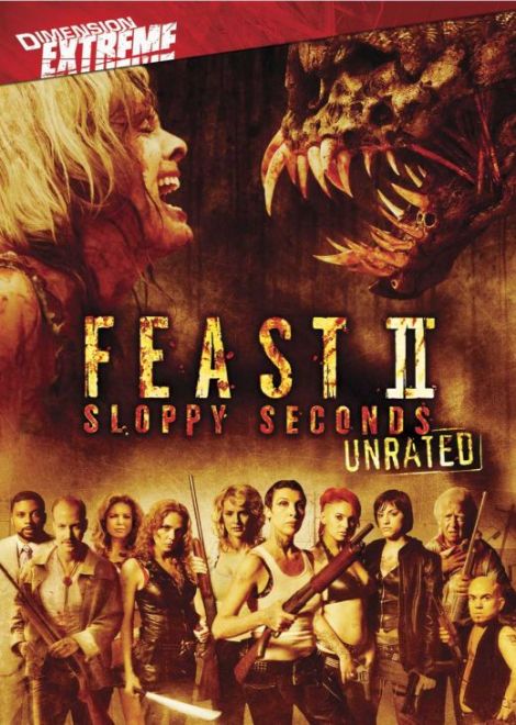 Holy shit did this movie has some monster-sized balls, with a dick to match. I mean that figuratively and literally. I really only vaguely remember the first installment of the Feast series. I know it was part of that Project Greenlight bullshit that made people realize that not everyone’s first movie ends up being Good Will Hunting, but I think it took three seasons for people to realize that. I remember Henry Rollins being in the original, which was pretty awesome. There were monsters fucking each other, one monster had his dick cut off by a door, and you saw it flopping all around, and let’s not forget the scene where Krista Allen pins a monster to the floor, punches its teeth out, and shoves her whole arm so far down the thing’s throat that it suffocates and dies. So why didn’t this movie get a better reception? Who knows. But it apparently was successful enough to spawn not one, but two sequels, the first of which I watched recently.