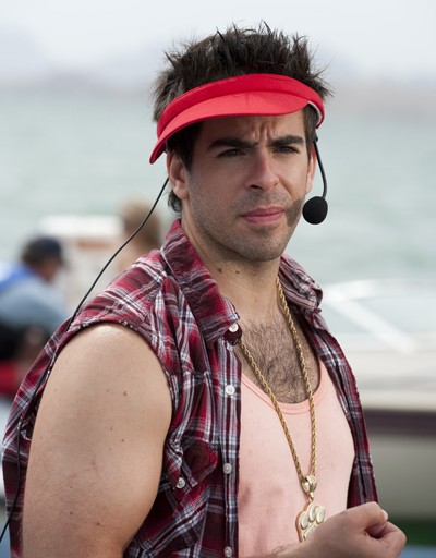 Here we see Eli Roth, looking like he is about to perform the hit song “Yvan eht Nion” with the Party Posse.
