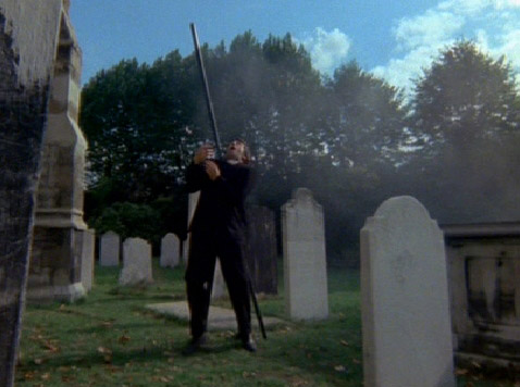 Robert refuses to accept what is going on, until he finds out that Katherine is once again pregnant. The priest had predicted this, and also predicted that Damien would complicate the pregnancy. Robert starts to believe when he has to go to the hospital after Damien rides his tricycle too close to Katherine, causing her to fall two stories, and having the pregnancy terminated due to the injuries. A photographer contacts Robert and shows him photos that seemed to have predicted the deaths of the nanny, as well as the priest. Trying to investigate anyone who knows where Damien came from, Robert and the photographer find that Robert’s actual child was murdered in an attempt to get Damien into a different family. Robert is finally able to contact people who he believes know how to be rid of Damien, the supposed son of the Devil, once and for all, and is left with no other options. While attempting to kill Damien, he is gunned down by the police, and Damien survives, attends his fathers funeral, looks at the camera, and smiles.