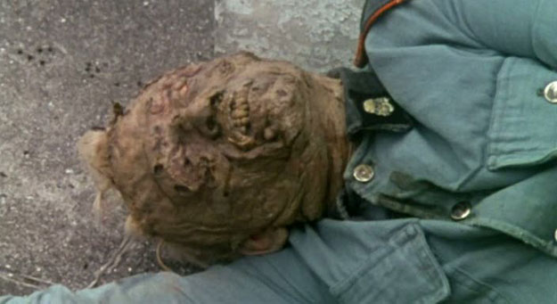 This film is another selection from the Fangoria book about underrated horror films. They kept talking about Nazis and zombies, a great combination, and the fact that Peter Cushing was in it. I knew that name, but just could not put a face to it. While watching the movie I kept thinking “Is that guy Peter Cushing? Maybe it’s that guy.” Eventually, when the commander of the SS Zombies made his appearance, I realized, “HOLY SHIT, THAT’S GRAND MOFF TARKIN!”. Ya know, from Star Wars. Other than the fact that ALL of my memories of Star Wars are awesome, Grand Moff Tarkin holds an even closer place to my heart than other Star Wars memories. The first is that when I used to play the Stars Wars Customizable Card Game (CCG, for short), I remember how awesome it was to play Grand Moff Tarkin. I also had no idea what his name was before I got that pack of cards. By the way, the Star Wars CCG was like Magic: The Gathering, but wasn’t dorky, since it was Star Wars. The other memory was sitting outside of a hardcore show in Easthampton, MA, waiting for the next band to go on, while a group of people were talking about Star Wars and I was merely listening in on them. At some point in the conversation, someone said, “Yeah and there was that old guy who looked like a skeleton…” and I loudly exclaimed out of anger, “EXCUSE ME, BUT THAT OLD GUY WAS GRAND MOFF TARKIN”, or something to that effect. Everyone looked at me and realized what a huge dork I was, and I think my friend Billy was the only one who actually laughed, while everyone else cowered in fear of nerd rage.