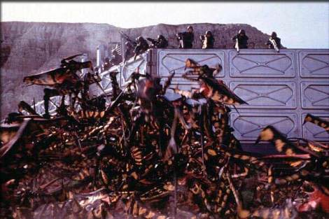 Something about this film that was mildly interesting was the way it seemed to be aware of itself, mock itself, while also using segments of propaganda in similar ways to how it would have been used during WW2 without it being too confusing. If you were to speak to any of the filmmakers, I don’t think any of them would make claims that this movie stood for something other than what it was, and would deny the existence of any sort of deeper meaning. However, that doesn’t mean that it didn’t successfully try to make the characters, as well as the viewers, just downright fucking hate the bugs. With scenes encouraging children to stomp on every bug they saw, to dissecting young bugs in high school to try to learn their weaknesses, to having characters address the camera/viewer directly, it really made you want to join them in their fight. Lucky for us, we aren’t actually at war with alien bugs, but still. Johnny Rico, played by Casper Van Dien, lets us know that “A citizen accepts personal responsibility for the safety of the body politic, of which he is a member, defending it, if need be, with his life. The civilian does not.” The viewers are all civilians, and this film tries to encourage us to be citizens. Also, the only rule we need to know is “Everyone fights. No one quits. You don’t do your job, I’ll shoot you myself.” The only rule according to Michael Ironside, that is. Sorry, got excited quoting this movie, what was I talking about? Oh yeah, it was an expensive attempt at satire that ended up just having lots of blood, laughable dialogue, and a lack of Denise Richards’ boobs.