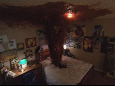 So what’s wrong with the movie that everyone loves so much? Well, where do we begin. I’m going to start with the end of the movie, which is confusing as FUCK. There really seems to be two different endings, and it’s hard to tell what has exactly happened. One ending shows Freddy’s footsteps of fire which tells us he has escaped after killing the drunk mom and sucking her into the abyss of her bed (huh?) and the other ending shows the daughter who has “defeated” Freddy dreaming of being killed in a car. So what happened? Is the mom dead and now the daughter is too? Did they give us a sense of “relief”, only to pull the rug out from under you? Having a killer whose power is based in a dreamworld, it can just get a little confusing as far as what is a dream, what is reality, and determining which scenes take place in those worlds. I mean, the scene where the first chick gets killed shows her defying the laws of physics by rolling around on the ceiling, the same way that Johnny Depp has his bed turn to a meat grinder and all his blood hangs on the ceiling, defying gravity. Maybe I’m thinking about it a little too scientifically, but it bothers me.