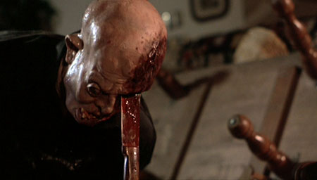 This movie as a whole isn’t really all that exciting or new, but it’s really a few particular moments and scenes that redeem the whole thing. That scene where Corey Feldman cuts his hair to look shitty? Not even the weirdest thing that happens! No, the weirdest thing that happens is a dance sequence involving Crispin Glover. A lady he is trying to bone comments on the music being danceable, and he certainly proves her the fuck wrong! His arms and legs start going all crazy, and then it made a boner in my pants. As if that didn’t bump it up a rating on the moon scale, then the craziness with Jason’s death certainly didn’t hurt. Add in the special effects of Tom Savini and this movie is (severed) head and shoulders above most of the following sequels.