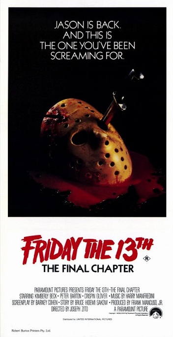The first time I saw this movie was at the Music Box Massacre back in 2008 and the director, Joseph Zito, was there to do a Q & A. I don’t really remember much of what was asked of him, or how he responded, except there was one thing he said that I will always remember about this movie. See that part where it says “Final Chapter”? Yeah, well, the filmmakers actually thought they were serious. This film was made at a time where there was a decline in the interest of the franchise, so they decided to give it one last shot, and were presumptuous enough to call it “The Final Chapter“. Guess what?! They were wrong…DEAD WRONG.