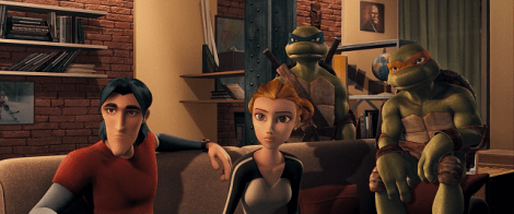 This film takes place after the events of the first three films, supposedly, which is kind of confusing, considering this one is animated and the other three aren’t. I guess it doesn’t really matter, but it establishes why the group isn’t together. Leonardo is down in Central America, fighting for the people in poverty or something like that, when he is visited by April O’ Neil in an effort to convince him to come back. Donatello and Michelangelo and working shitty jobs, as an IT operator and pizza delivery guy, and Raphael is always tired, because he is also a vigilante known as Nightwatcher. Leonardo comes back to join them, which happens to coincide with demon things being released onto the city. If all the demons aren’t taken care of, there will be worse demons on the way. Remember Scooby Doo 2: Monsters Unleashed? Imagine that plot, but with the Ninja Turtles. They fight bad guys, they eat pizza, do ninja stuff, and there’s an awesome fight between Leonardo and Raphael on the rainy rooftops, but they eventually put their differences behind them to fight bad guys. Did I mention Casey Jones is there to help? Well, he is! So the good guys win, the bad guys lose, Splinter is their mentor, and all the turtles are doing flips and jumping off of things. Success!