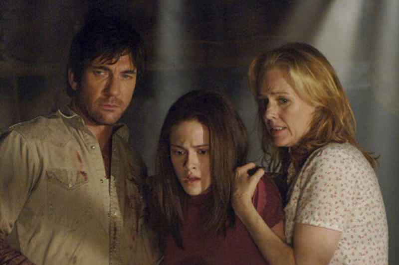 I am including two different posters for this movie not because that bitch from Twilight is some super hottie or whatever, I just thought it was hilarious that they used the same exact picture and just changed the outfits. Whether or not the picture was even originally of that bitch from Twilight is probably up for debate, and maybe they just photoshopped her face right on there. According to Netflix, I’ve seen this movie before. I know what you’re asking, you’re asking how I could have seen it and not remembered it. Well how the fuck should I know the answer to that question? I have vague memories of watching it while at work and just poking my head into the theater sporadically, but I don’t think I actually watched it start to finish. I remember that bitch from Twilight was in it and remember it had something to do with ghosts on a farm, but what movie DIDN’T have ghosts on a farm in 2007? Wasn’t there one with Buffy that year too, in addition to the sequel to The Grudge? Goddammit, why are there so many movies that are exactly the same?