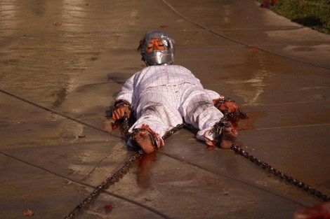 From the opening montage you really get a grasp of how this piece of shit is going to try to warn us about the dangers of technology, even mentioning how scary Y2K was. Seriously? They’re using Y2K to try to scare us over a decade after everyone realized it was bullshit? Ugh. Next, we see a happy couple getting into their cars to go to work in the morning, only to then see chains attached from their bumpers to a woman who is bound and gagged in their garage. As they drive forward, they pull this woman into traffic, and right when the woman gets ripped in two, the title shows up. The cast of characters we are going to be following are a group of high schoolers that are all friends or something I guess. After meeting them all, we see the “nerdy” one getting a chain letter in his email later that night. His sister sees this, and as if this is the first time anyone has ever received a chain letter in their email, she loses her mind with terror and forwards it to her five friends. We see the people who have gotten these letters, and every single one of them gets to have a “Whoa, a chain letter? I am NOT messing with THIS!” moment, or a “Chain letter? This is so lame!” moment. Let’s just say that those teens who deleted the email shouldn’t have done that! The first guy is apprehended at the gym and has chains tied to his arms to lift him up off of the floor. Rampaige got grossed out at that part. Once lifted, the bad guy cut his achilles tendons, which probably hurt. The bad guy, whose arms we could glimpse just long enough to see a bunch of tattoos of chains on them, uses a big thick chain to rub on the guys face until his head falls apart. When detectives arrive, they look at the manager of the gym and are all like, “Hey man, were these chains here before? Randomly dangling from the ceiling?”, and the manager is all, “No way man, that’s totally not how I run this place.” The detectives take note of this, as if chains will be a recurring plot point.