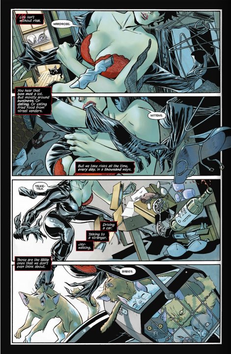 This is another book that I couldn’t judge quite accurately because of the internet, even though the attention didn’t really fall on this title. The internet lost its mind, and rightfully so, over the way women were portrayed in two specific titles that came out this week. One of these titles was Catwoman, who is a character who has no problem using her womanly powers to make men weak in the knees. Here is the opening page from the Catwoman series: