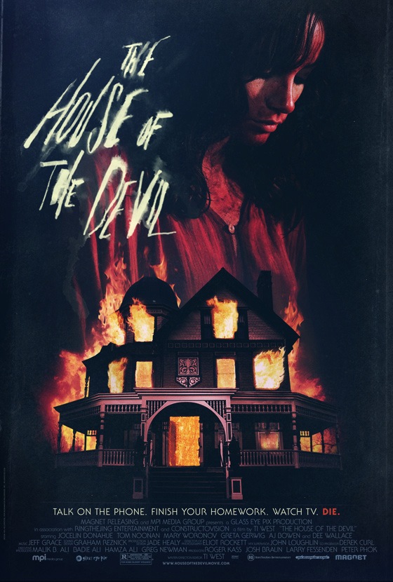 I’m going to leave that synopsis far more vague and ambiguous than I normally do, because I encourage every fan or horror movies, fuck it, any fan of MOVIES to go watch this film. I didn’t know much about writer/director Ti West before seeing this film, but I can tell you that I will see every movie that this guy is involved in from here on out. Granted, he was somewhat responsible for Cabin Fever 2: Spring Fever, which was a piece of shit, but word is that he tried to get his name removed from it anyway. Contextually, it was a great choice for him to set this movie in the early 80’s, because as he has mentioned in interviews, it was one of the last time periods that wasn’t tainted by the realm of technology. If you were a babysitter at a house in the woods, then you were a babysitter at a house in the woods. If someone said they’d be somewhere at a specific time, you just had to hope they would show up, seeing as there were no personal communication devices. It was also a time in American history where people were actually afraid of Satanic cults kidnapping you off the street and sacrificing you to some mythical demon, which is hilariously terrifying in retrospect of how stupid people were. Not only did West strive to emulate the 80’s contextually, but also in the production of the film itself. For example, rather than shooting it digitally or on 35mm, it was shot on 16mm and blown up, as was the most cost-effective filming technique in the early 80’s. From the music to the outfits to the special effects and especially the opening credit sequence, this film pays homage to movies of the 80’s that really shaped a lot of contemporary filmmakers and how they view horror.