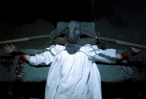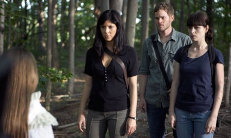 The film opens with a man being strapped to a table, a metal mask being placed over his head, and a guy in a robe using a fancy hammer to smash that mask into his face. That scene is immediately followed by a woman coming out of the shower. Yes! That woman is Carmen (Cindy Samson), an investigative reporter for DCypher magazine. Hahaha DCypher, that’s fucking stupid. She learns of a man who went missing in Europe, and for some reason decides to go over to Europe to investigate the disappearance, despite being instructed to investigate bees. While investigating the last place the man visited, she encounters weird townsfolk who seem to be hiding a secret and avoid talking to her. She’s there with her boyfriend, played by Aaron Ashmore, and an intern, played by Meghan Heffern, who go with her to investigate some weird fog in the woods. Both Carmen and the intern see a creepy statue (or “shrine”, if you will) in the fog, and then the three are apprehended by the townsfolk. The intern gets the same mask smashed into the face treatment that we saw in the beginning, but then Carmen and her boyfriend are able to escape and seek refuge in a nearby cottage. They aren’t able to hide there for long, as the people in charge of smashing masks into faces find them, only to realize that Carmen is turning into a scary demon monster. Apparently the only way to kill these demon monsters is by smashing their faces with these masks, and the townspeople were trying to protect humanity from these demons, as opposed to just being jerks. Go figure!