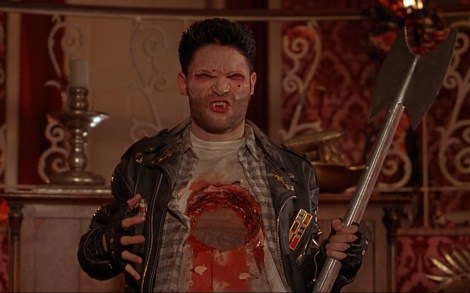 An expedition in South America comes across the remains of a woman and one of the members of the expedition puts her heart back in and the woman-demon comes back to life! That’s when the movie reveals this is a story being told by a mummy to The Cryptkeeper (voiced by John Kassir). After a few puns, The Cryptkeeper introduces this story where a wild dude (Corey Feldman) goes to a bordello where all of the women end up being vampires! The wild dude’s sister Katherine (Erika Eleniak) goes in search of him but when the police don’t really care, she enlists private detective Rafe Guttman (Dennis Miller) to find his brother, but when he finds the brothel and sees the vampires, Katherine thinks he’s crazy, especially because she’s a devout Christian who works closely with a Reverend, who’s played by Chris Sarandon. Despite her disbelief, Guttman is able to convince her and the reverend the truth of what’s going on and they decide to storm the brothel to take out the head vampire Lilith (Angie Everhart) through the use of holy water-filled Super Soakers and the song “Ballroom Blitz” by Sweet. They are eventually able to use some of the more theatrical elements of the reverend’s elaborate stage show to wound and ultimately defeat Lilith. With the situation behind them, Guttman goes to put the moves on Katherine, and when he slides his hand up her thigh, it reveals vampire bites and she attacks him! Oh no Dennis Miller!!!!!!!!