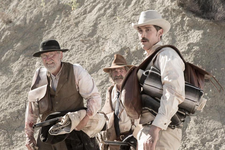 A stranger rolls into the town of Bright Hope that raises Sheriff Franklin Hunt’s (Russell) suspicions. These suspicions are confirmed the next morning when the stranger and Samantha O’Dwyer (Lili Simmons) go missing, along with horses and a murdered stable boy. The Sheriff, along with his backup Deputy Chicory (Richard Jenkins), John Brooder (Matthew Fox), and Samantha’s husband Arthur (Patrick Wilson) head out in search of a legendary tribe of savages, known to “rape and eat their mothers.” WOW, THAT SOUNDS FUN AND SAFE. As the four men head out to recover Samantha, they experience a whole bunch of bummer events and a whole bunch of blood. Man, living in the Old West sounds so crappy.
