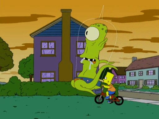 “E.T. Go Home” – When Bart goes to the shed in the backyard, he throws a baseball into it and discovers Kodos. Wait, how long have they had a shed? Anyways, Kodos asks for help building a communication device, and thinking that this will result in rescue, Bart helps. It turns out it’s actually a portal to allow more aliens to arrive on Earth and humans are enslaved. YOU IDIOTS! This parody hit all the major points of E.T. and then put their own spin on it, which I always love. One sequence of Homer getting into the shower with “Marge” (actually Kodos) makes this whole episode worth watching. When Kodos doesn’t respond to Homer asking if he can join the shower and gets no answer, Homer clarifies, “As always, silence means yes.” Kodos rubs Homer’s neck, with a request that he rub, “…the neck of my butt.” HAHAHA. Awesome. Followed by Homer warning, “Someone’s taking the highway to the danger zone.” BUTT STUFF. BUTT STUFF RULES. The episode also featured actual music from E.T. to add authenticity and at some point, someone used the phrase “space doggy.” OFF TO A GOOD START, GUYS.