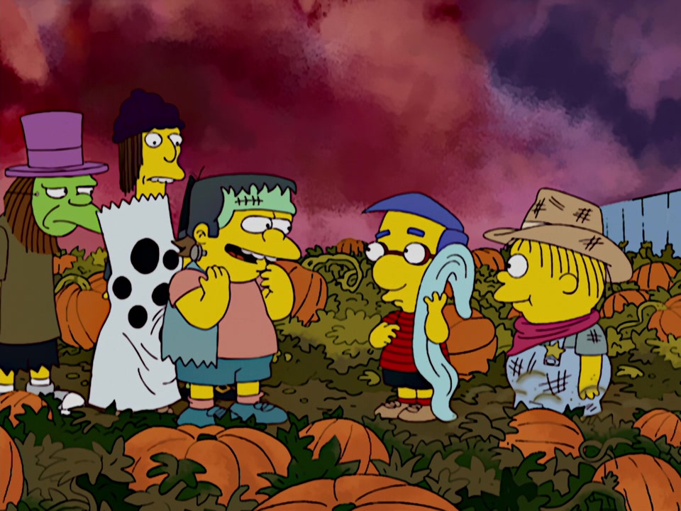“Heck House” – After pulling some successful tricks on Halloween night, Bart, Nelson, and other assorted Springfield children realize tricking is more fun so they go on a pranking spree. To show them their punishment for their sinning, Flanders sets up a haunted house. When it proves ineffective, Flanders transforms into the Devil and takes the kids to Hell to show them what punishment for sinning is REALLY like. Homer gets transformed into spaghetti for his gluttony and Moe is punished for being envious of people who are crotchless. The kids vow to stop sinning and the episode ends. This episode had A) People celebrating Halloween and B) Multiple residents of Springfield showing up. I LOVE WHEN THAT HAPPENS. We also got to see Hell, which was cool, and Moe got to talk about “the crotchless.” Not bad!