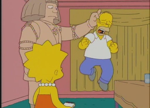 “Married to the Blob” – When a meteor lands in the Simpsons’ backyard, of course Homer eats the sludge that leaks out. You idiot. This goop transforms him into an eating machine, which he basically was before, but now he also grows in size. There’s a montage of Homer wandering around town eating people with a parody of Sir Mix-A-Lot’s “Baby Got Back,” know sung as “Baby Got Fat,” by the real Mr. Mix-A-Bunch guy himself! Dr. Phil tries to confront Homer about the issues behind his eating and the town solves the problem by opening a homeless shelter, only to have Homer be waiting on the other side. Guys…this one was pretty good! I liked that it parodied The Blob and I especially liked that it had a really dark ending featuring the deaths of dozens of innocent people. Homeless people, no less! Very mean-spirited. It also had Homer saying, “Must eat. Then poop. Then eat some more. Then eat while pooping,” which made me laugh, as well as a teen saying, “Tell my friends I died kissing a girl,” right before Homer consumed him. This episode is off to a pretty good start!