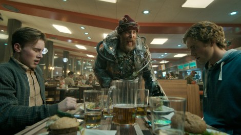 As implied by the title, this movie has a bit of a frenzied and chaotic energy, which largely impedes its narrative momentum. While the present story unfolds, we pivot to vignettes about some of these characters experiencing bizarre encounters that led to that night in the diner. From using tech to revive a loved one from the dead to cell phones turning people into zombies to abandoning the real world for virtual reality, the whole first half of the movie feels more like a Black Mirror-esque anthology than a linear narrative. It’s a credit to the impact of that Charlie Brooker-created series and how he captured a certain type of satire of tech that these vignettes in Good Luck, Have Fun, Don’t Die feel so derivative, though it could also be due to how uninspired these vignettes feel.