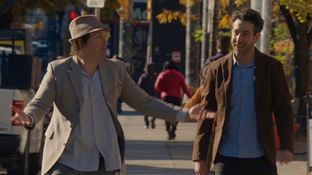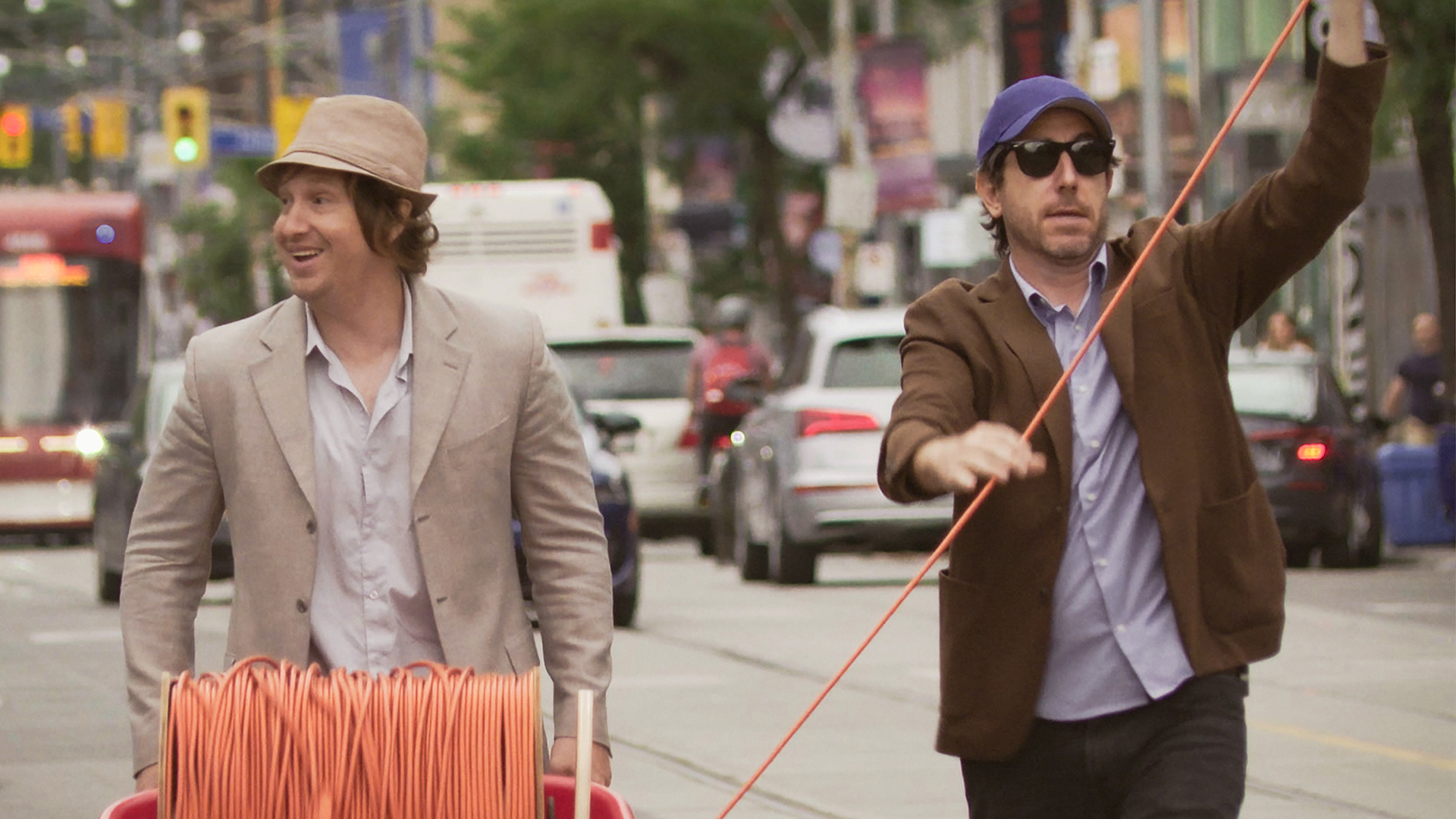 Even though this is, you know, a movie, the entire vibe honors the spirit of the lo-fi web series and TV show, with the pair clearly just running through Toronto to steal whatever footage of themselves they can, and sometimes even having interactions with strangers on the street. Some exchanges are so absurd that they feel akin to something you’d see in a Jackass movie. What makes the filmmaking feel much more impressive, though, is the fact that these dorks have been filming themselves incessantly for decades, so thanks to some very clever editing, the filmmakers were able to re-purpose random footage of themselves from 20 years ago to make it look like they’re interacting with younger versions of themselves to propel the narrative forward. Some might think the pair had this long-term plan, based on how seamlessly the younger scenes fit into the narrative, but rather, it showcases just how inventive and improvisational of storytellers they are, that they could somewhat reverse engineer a feature film based on random scenes they already shot of themselves. Further confirming their improvisational filmmaking skills, the duo hosted a Q&A at my screening where they revealed that, during one key scene, they intentionally acted so strangely, they hoped to be confronted by authorities, yet because they received the exact opposite reaction, they had to film an entirely different sequence that contradicted footage they already captured to account for an entirely different outcome.